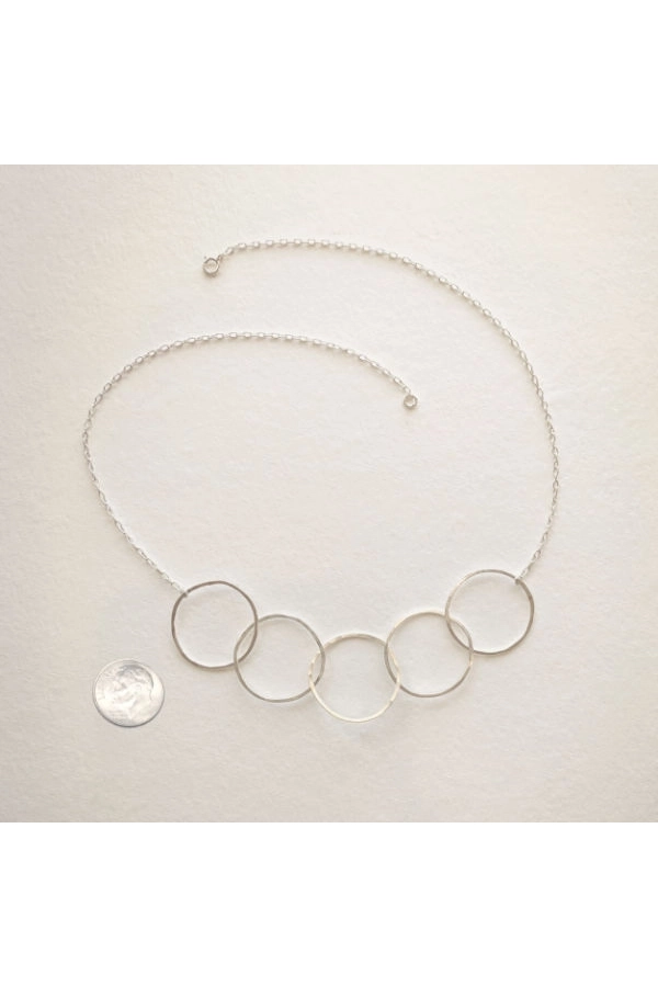 Moderne Halskette aus gemischtem Metall. Die Marquise-Reifen aus Sterlingsilber sind mit Golddraht umwickelt. Unsere Creolen werden in unserem Schmuckstudio in New Orleans von Hand gefertigt, gehämmert und poliert. Der Anhänger ist ca. 1,25 Zoll lang. Die Kette ist 45,7 cm lang und hat einen Federringverschluss. Metalle aus Sterlingsilber, vergoldet oder verdrahtet. ✹ Die Reifen werden in unserem Schmuckstudio in New Orleans von Hand geformt, gelötet, gefeilt, gehämmert und poliert.
