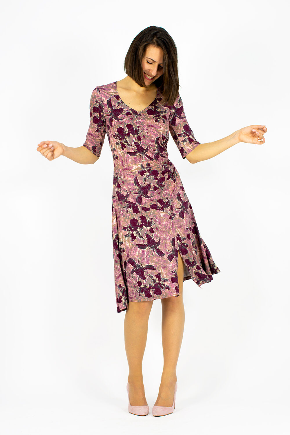 Das Rockteil ist ebenfalls dezent asymmetrisch, ein Schlitz in dem wunderbar weit schwingenden Rock zeigt in der Bewegung etwas Bein. Lebensfreude pur…!