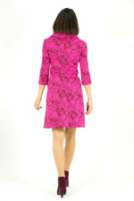 Es ist körpernah geschnitten, der leicht ausgestellte Rock verleiht dem Kleid eine A-Silhouette.