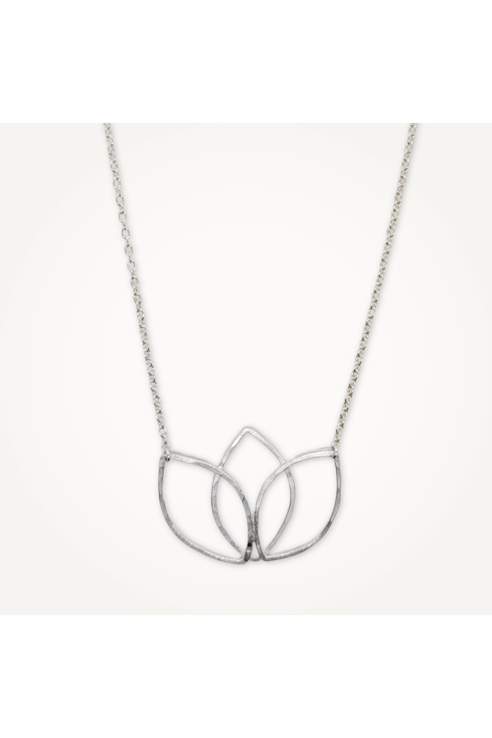 Finden Sie Ihren inneren Frieden mit unserer wunderschönen, vom Yoga inspirierten Lotusblumen-Halskette. Die Lotusblume ist fest mit der Erde verbunden und strebt dennoch nach dem Göttlichen. Ein tolles Geschenk für jemanden, der Yoga, Meditation und alles Natürliche liebt. Jeder Lotus wird einzeln von Hand gelötet, gefeilt, gehämmert und poliert. 18 Zoll lang. Lotus hat einen Durchmesser von etwa 1,75 Zoll. Verpackt in einer Schmuck-Geschenkbox mit Lotus-Einsatz. Alle Metalle sind aus Sterlingsilber. ✹ Handgefertigt in New Orleans.