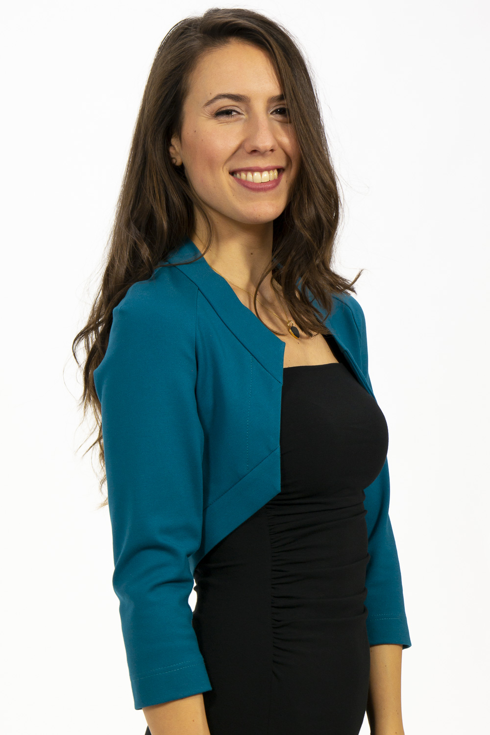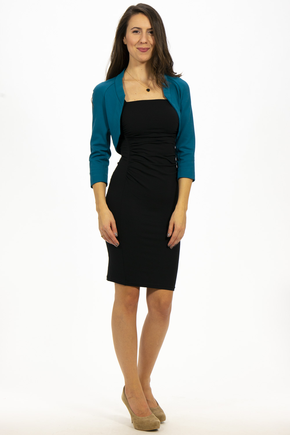 Der Bolero NELE ist wunderbar mit schmalen Jersey-Kleidern kombinierbar und kreiert durch seine schlichte Eleganz ein stilvolles Outfit.