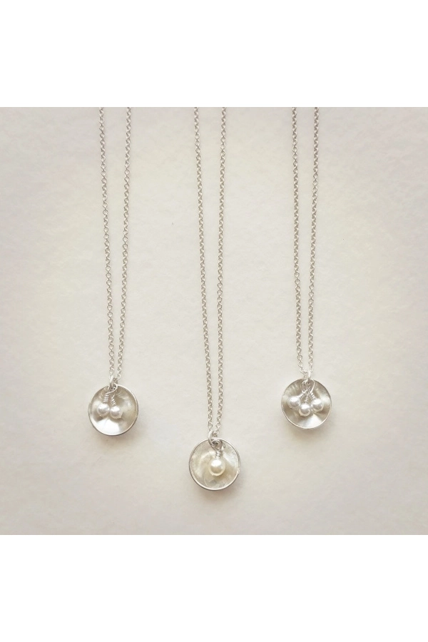 Silberne Oyster-Halskette mit 3 Perlen