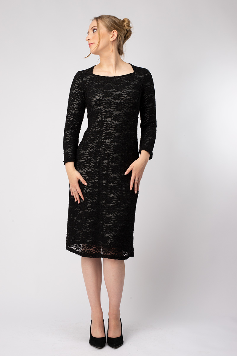 Unser Kleid VIOLETTA ist ein festliches Kleid aus elegantem Spitzenstoff. Es ist komplett gefüttert mit silbernem Viskose Jersey.